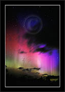 During these years auroral activity was pretty low at my (geomagnetic) latitude. Images re05442-re05553 show how Kodak's new film E100SW made aurora photography very rewarding: one film could catch the whole spectrum of colours. Also Kodak's old and cheaper Elitechrome EB100 gives similair results (both films exposed and developed for 400ASA speed). A bit more is said about films, digital cameras and visual perception on aurora page "Year 2001". Image re06212 is my best recording of simultaneous aurora and noctilucent cloud (NLC). However, showing both phenomena in same scan is hard due to their large difference in brightness. NLC is overexposed between horizon and aurora.