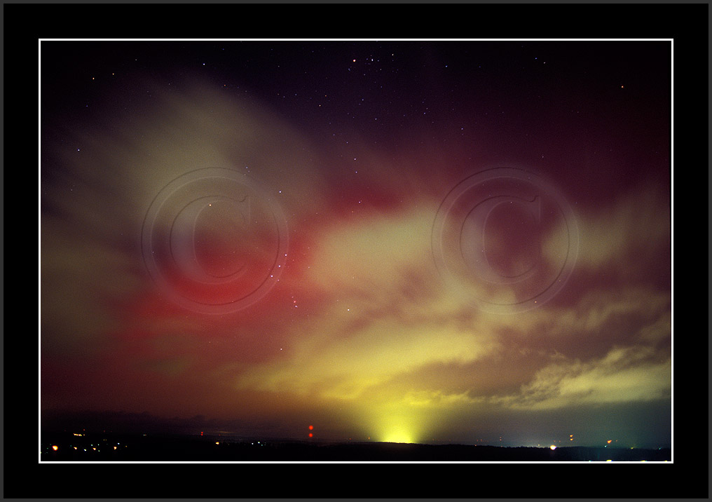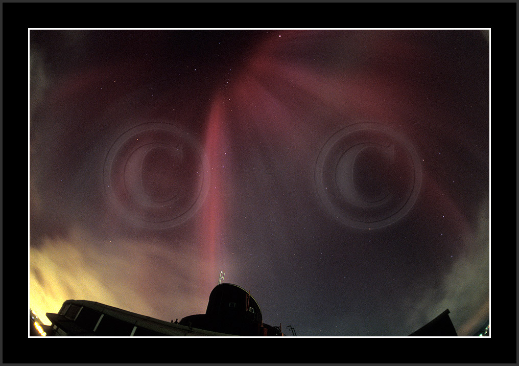 What was special in this display (much like in April the 6th 2000 display) was that northern sky was practically empty of auroras while in the south auroras extended as low as I could see under foggy conditions. Also the very extensive red colour resembled April's display. Physically both displays were "driven" with exceptionally negative figures in planetary magnetic field's z-component values (Bz): in April it was (if I recall it right) about -50nT while this new one showed values down to -55nT.