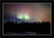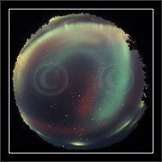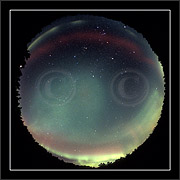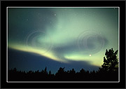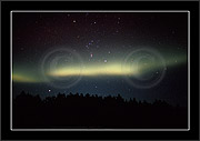 The rest of images are from a "surprise" display 11/12 Feb 2004. There was no CME known to arrive and also the most probable source - solar wind from a coronal hole - did not give too much hope of a good display. However, before leaving for star photography it was evident from Costello-prediction that there was moderate auroral activity on. In the early evening 17-19 UT the whole sky was full of diffuse and "peculiar" shaped aurora. It is not common at my relatively southern latitude to have auroras extending down to 10 degrees in south. The very last image with reddish aurora glow is from Feb 21/22.