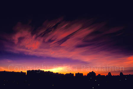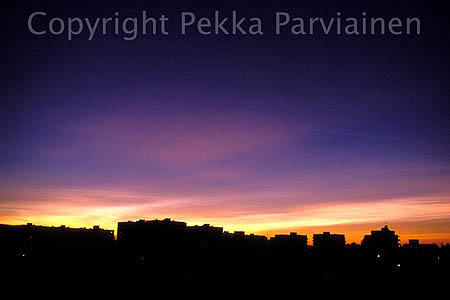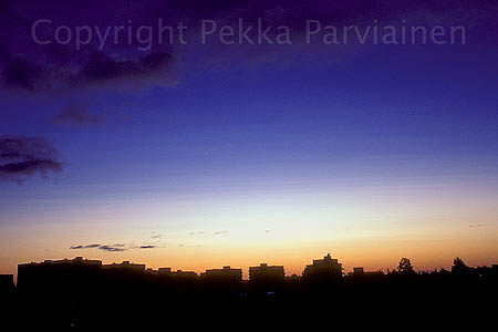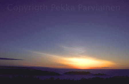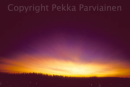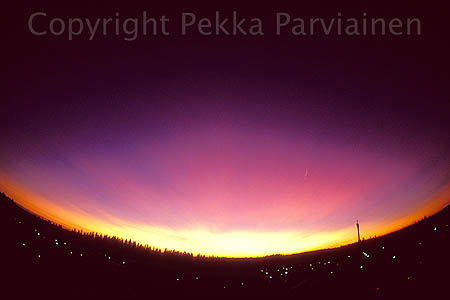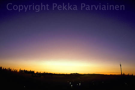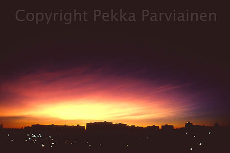 Typical view at sunset is in he00652: milky and "soft", whitish veil. This stuff becomes visible only at sunset (or rise); it can be seen only about an hour prior to sunset (or after sunrise). Later this turns into red "twillight looking" cloud like in he01053 with an extremely brigh part close to horizon. And a bit later all but bright horizon dims like in he01332.
