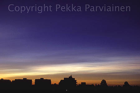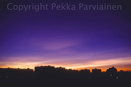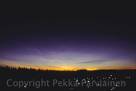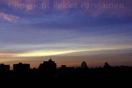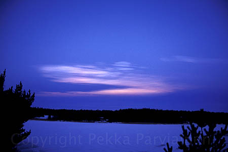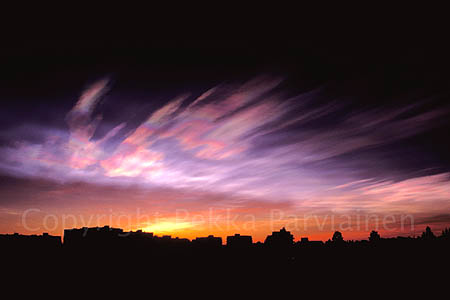 Nacreous clouds or mother-of-pearl clouds are difficult to document properly. Very often there is a dazzling brightness close to horizon while only a few degrees higher the sky is quite dark with clouds showing pastell colours. Capturing the bright part and the colours into same exposure is always a compromise.