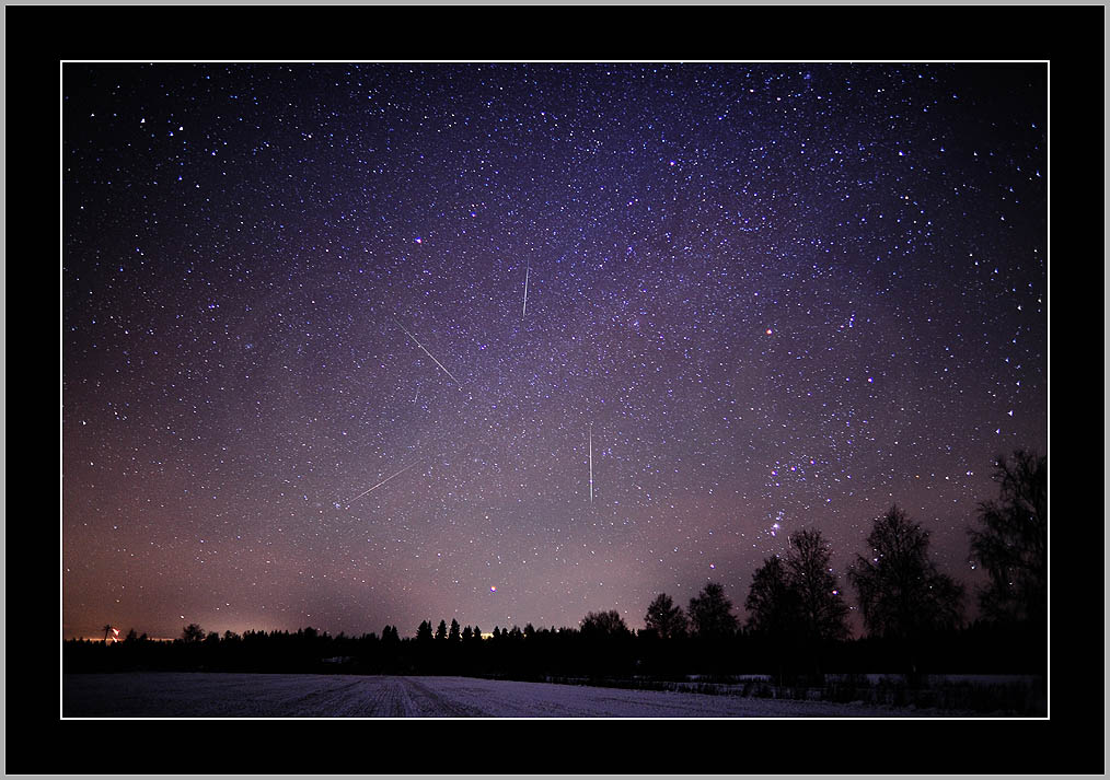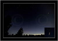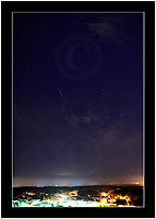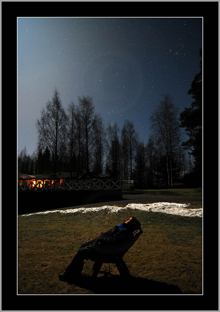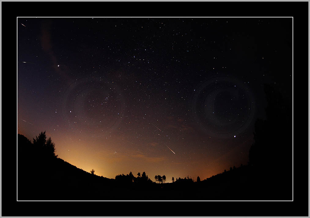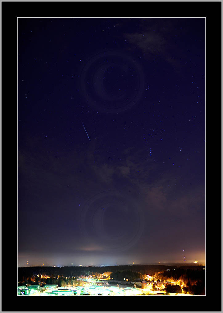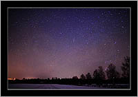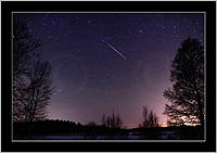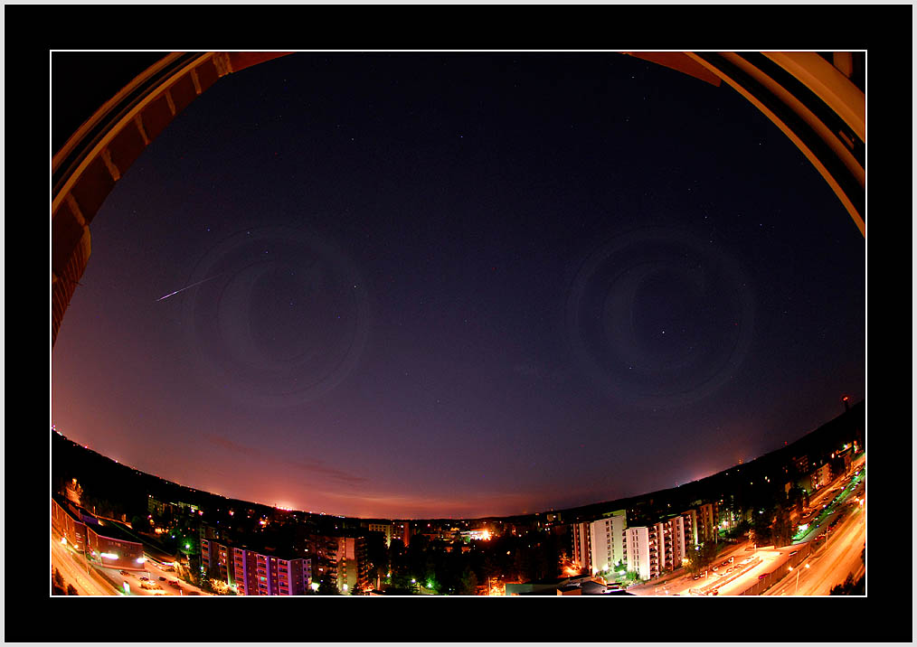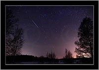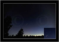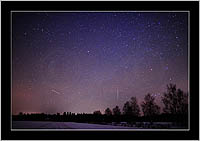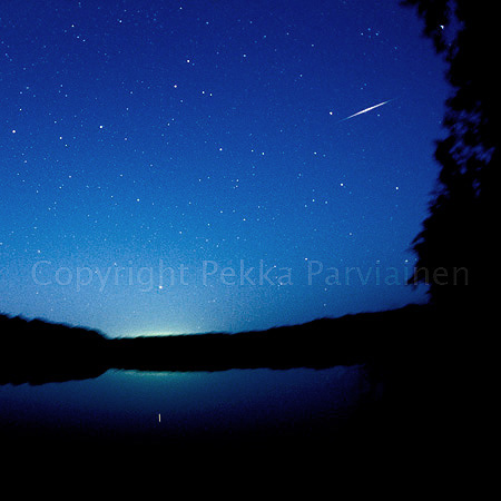 Image like me02342 was for a long time in my wish list: meteor with reflection. It is not an easy crop to catch. You need calm water surface and a very bright meteor low above the water. Our summers are too bright to make any astrophotography and actually the only open window is in late Aug-late Nov; after that waters are frozen 'til late April, and then again it is too light to do astrophotography. Moreover, you need a very fast film meaning short exposures and thus you need to use a lot of film! Only to see bright meteors avoiding your wide angles! But one day you have your moment!