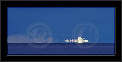 One frequently seen mirage is the 'Flying Dutchman', where a dark silhouette of a distant ship and its superior mirage are slowly moving in horizon. See image 'Laiva4' below