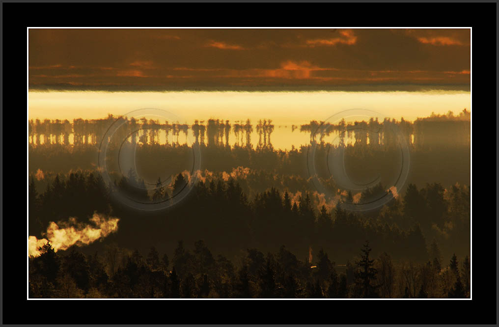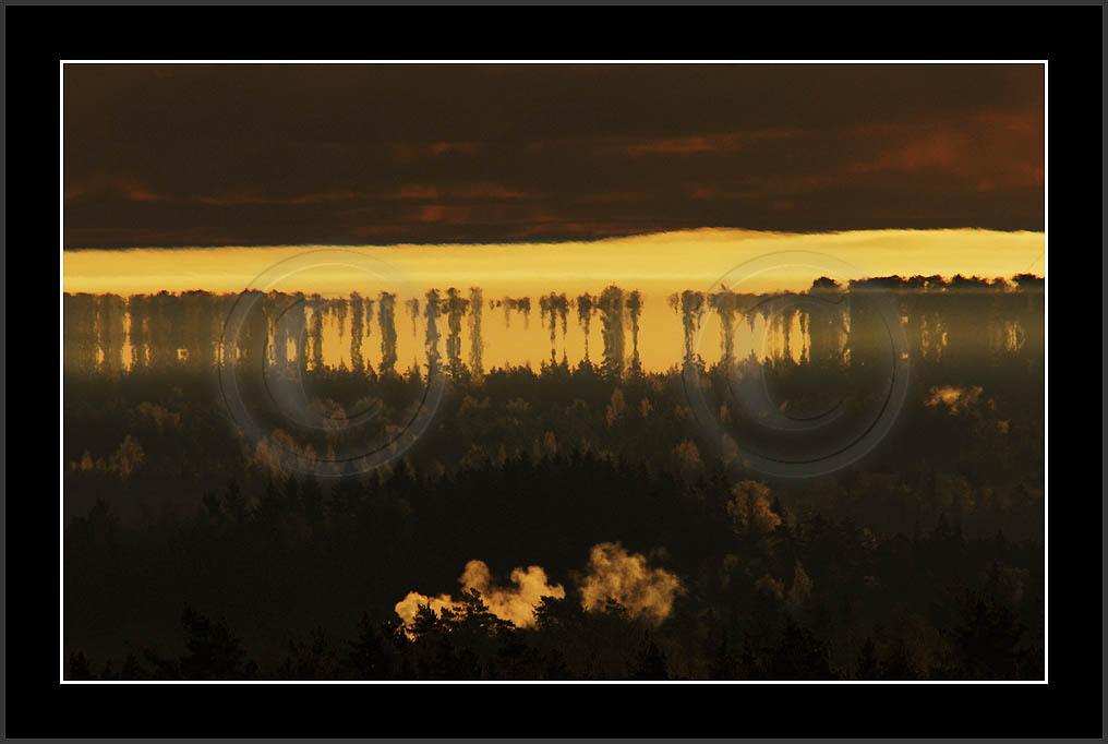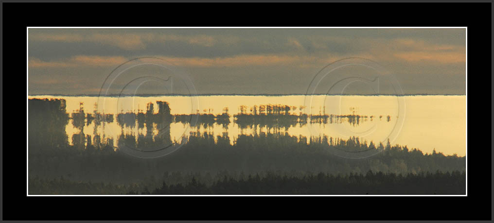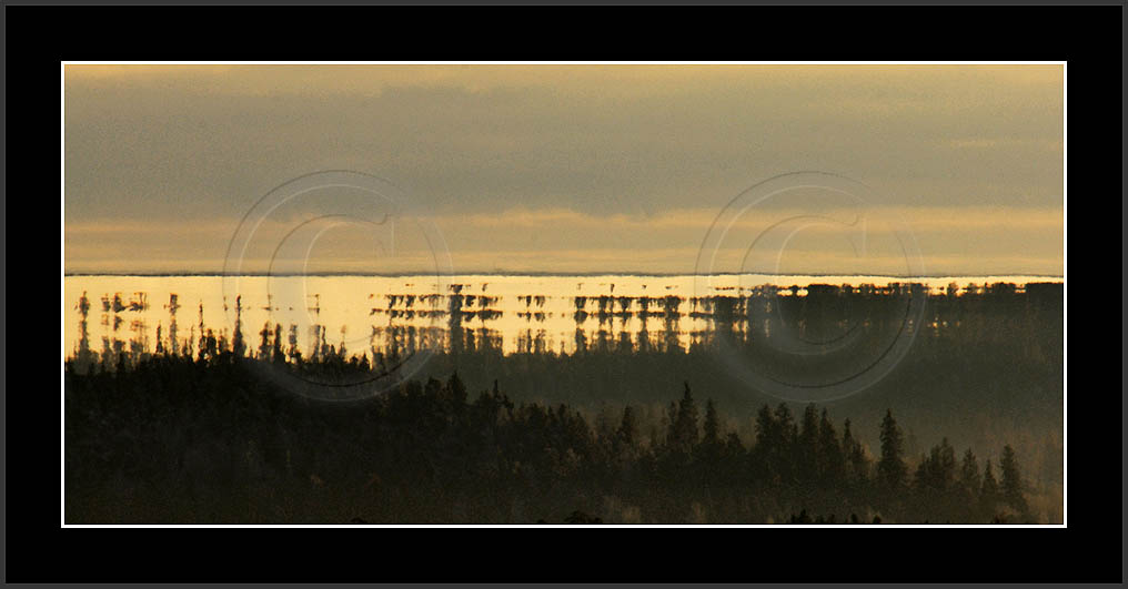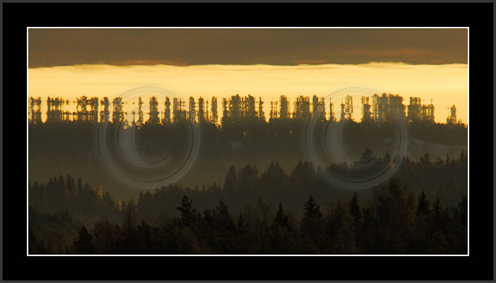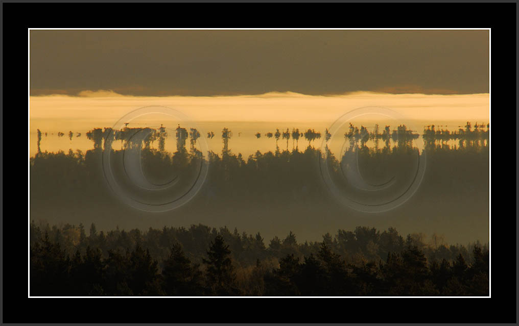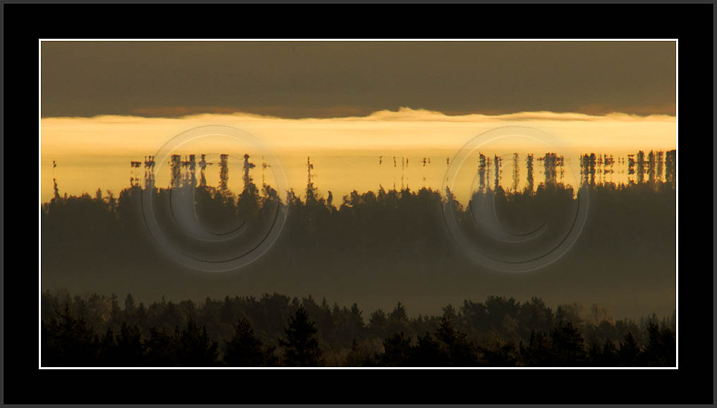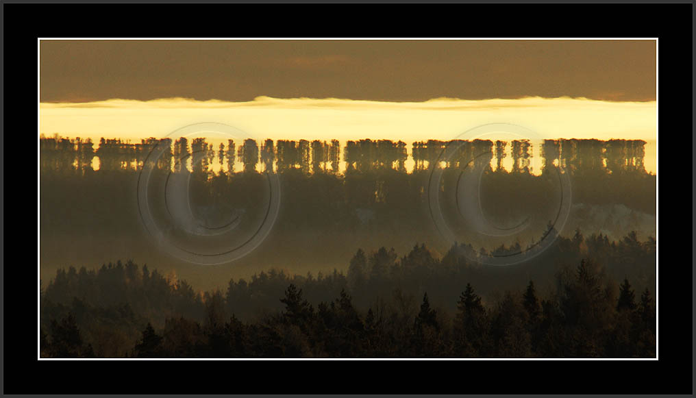 Open sea and large lakes are 'famous' of their (superior) mirages. Perhaps these phenomena are more frequent over water and perhaps stories of ghost ships and of Fata Morgana are familair and too thrilling leaving less interest in land observations. However, cold and calm winter mornings can create nice displays of distant tree lines as shown on this and on the previous page.