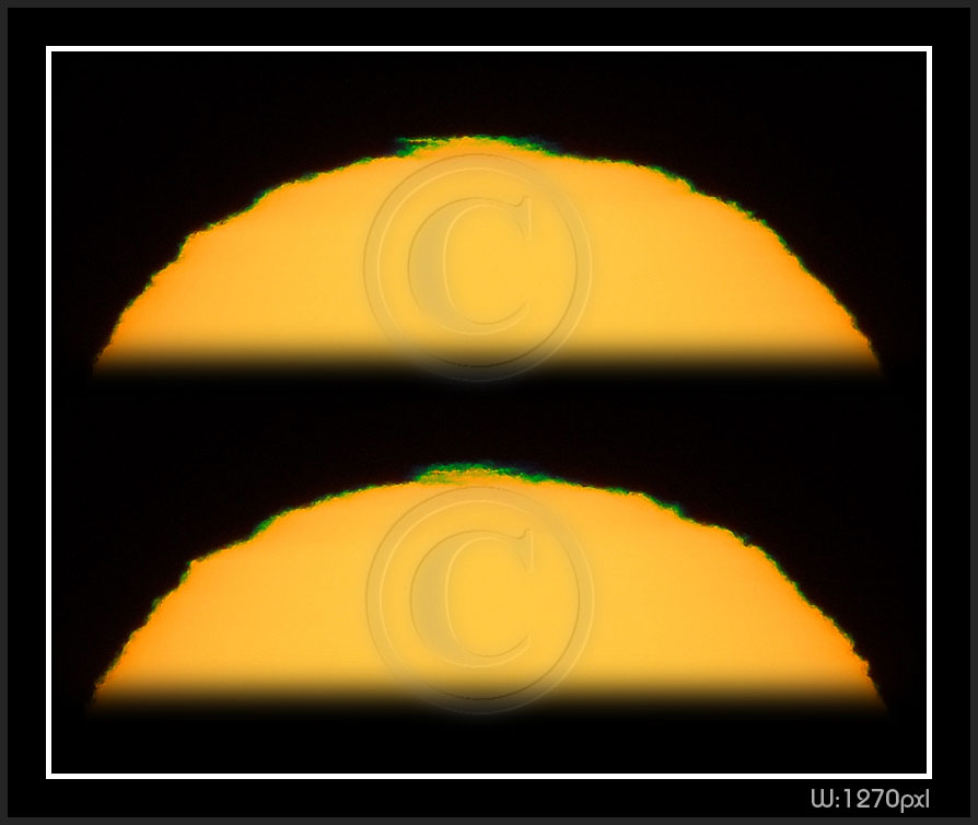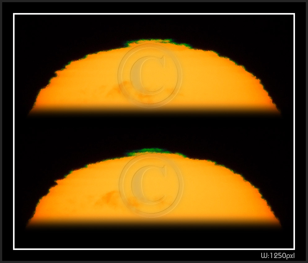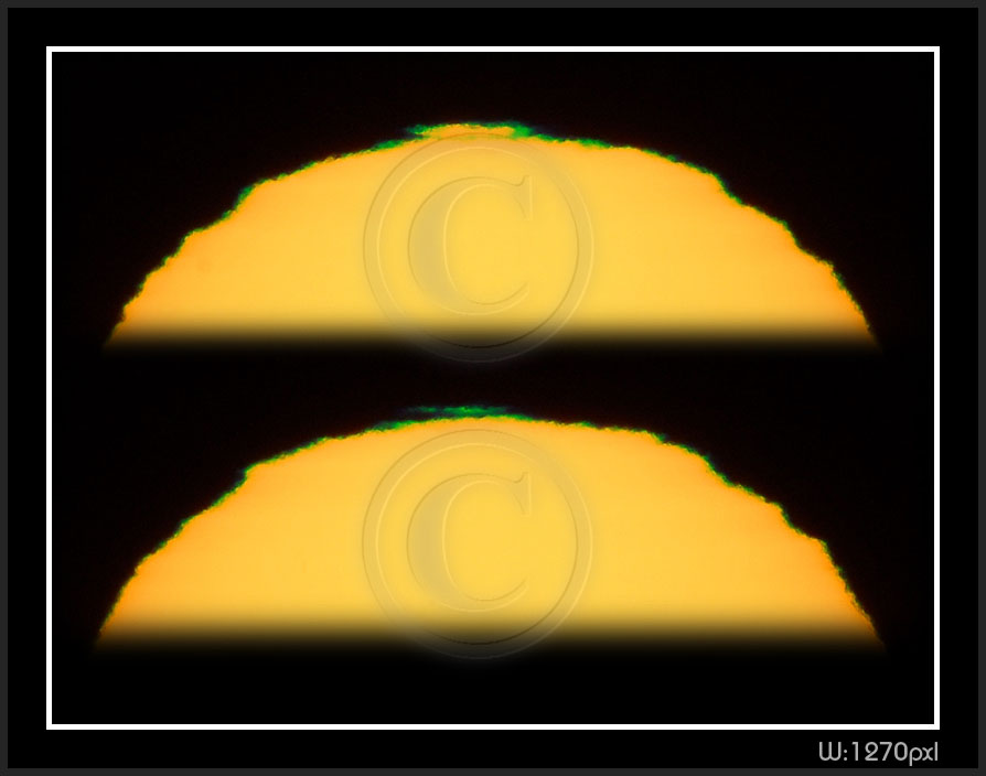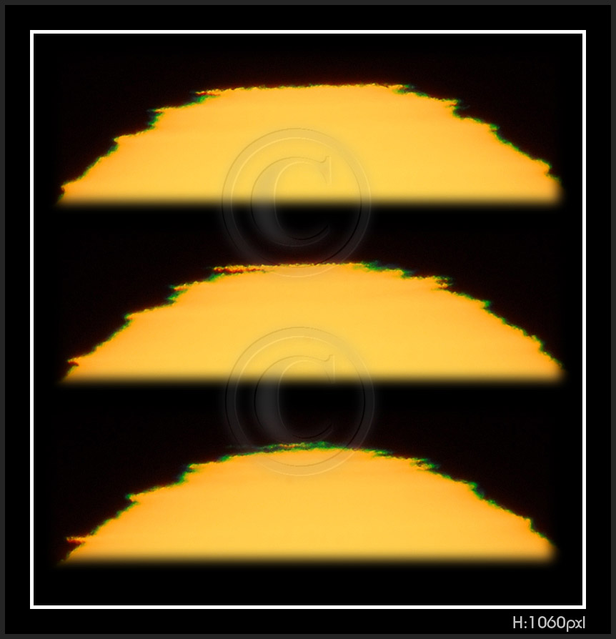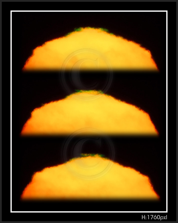 So, my solar distortion and green flash are now digital. Next thumbnail pages have been photographed 2009 on my new vantage point at sea level. Here is a number of facts to keep in mind while going through pictures.