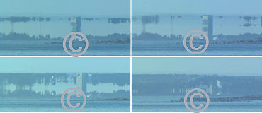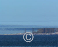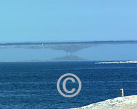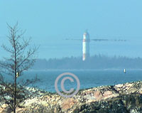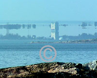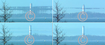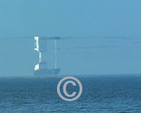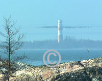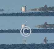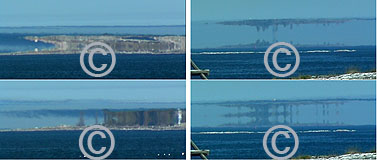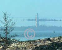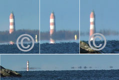 Inferior mirage is frequently seen at open sea or at large lakes especially in autumn, when cold night air rolls over hot water. Distant islands look as if they were reflected in calm water. However, there is an easy way to find out whether question is of mirage or of an ordinary rellected image: lower your vantage point and see if islands vanish the more the lower you observe. If they vanish you are observing mirage. Superior mirage is far less frequent than inferior mirage. Favourable conditions are born f.ex. at cold sea, when warm air from land is blown above it creating an inversion layer a few meters above the cold water surface. In my northern latitude this kind of situation is most common in spring just after sea is freed from ice cover. Occasionally more than one inversion layer is born giving rise to several miraging images. These images are above the "true" object: the first miraging image is upside down, the second (usually greatly flattened) is upright, then again (greatly flattened) third miraging image is upside down and so on. An inferior mirage is visible from different heights of the miraging surface; only the strength of the phenomenon differs. With superior mirages things are different: one has to find correct vantage point to see it at all. Typically there is a "height zone" of only 1-2 meter, where superiors are seen. This height may be changing rapidly as inversion layer alters in height. To hunt for superior mirages one has to find a place where it is easy to hike up and down. Complicated displays may be hard to explain, because there are islands at different distances and details at different heights mirage differently. Mirage videofiles (RM-files) are typically between 500-800 kB, a few of them larger (up to 1.8 MB).