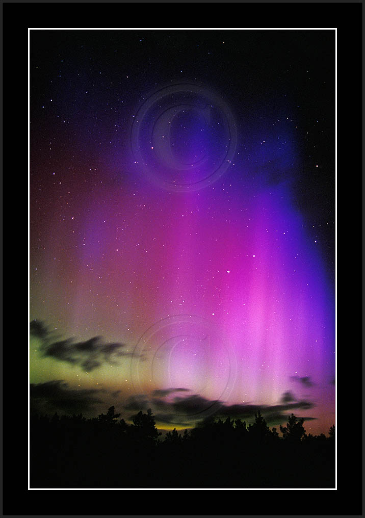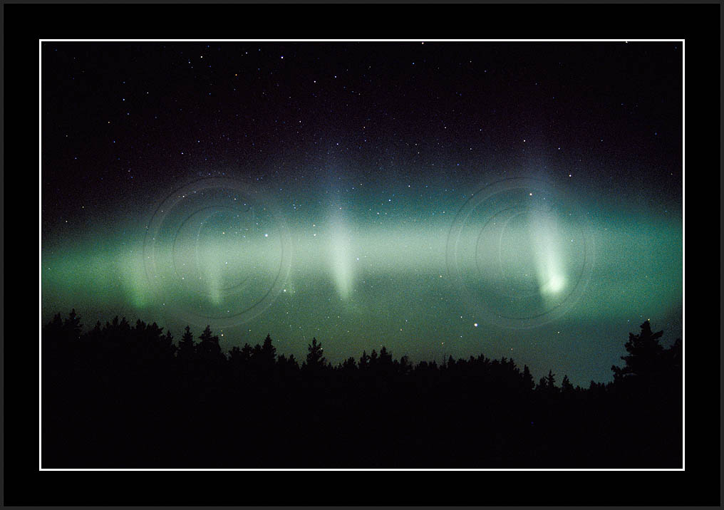 During these years auroral activity was pretty low at my (geomagnetic) latitude. Images re05442-re05553 show how Kodak's new film E100SW made aurora photography very rewarding: one film could catch the whole spectrum of colours. Also Kodak's old and cheaper Elitechrome EB100 gives similair results (both films exposed and developed for 400ASA speed). A bit more is said about films, digital cameras and visual perception on aurora page "Year 2001". Image re06212 is my best recording of simultaneous aurora and noctilucent cloud (NLC). However, showing both phenomena in same scan is hard due to their large difference in brightness. NLC is overexposed between horizon and aurora.