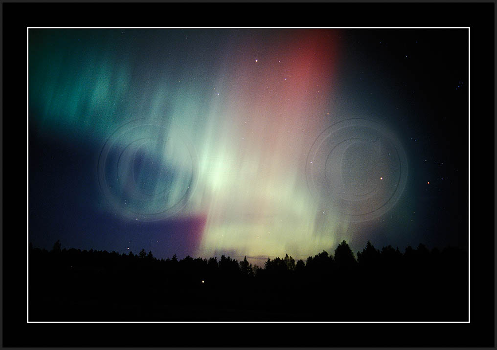 Weather was not optimal (we also lost here many good displays due to daylight), but still several displays were monitored. The best observed at my latitude was 22/23 Oct (starting from image au16742). This display produced exceptionally active corona; it was photographed with 8 mm fisheye using Fuji's Provia 400 push processed to 1600ASA; grainy image is the price to pay to freeze movement. Pay attention to the many shapes of corona found in 8 mm pictures.