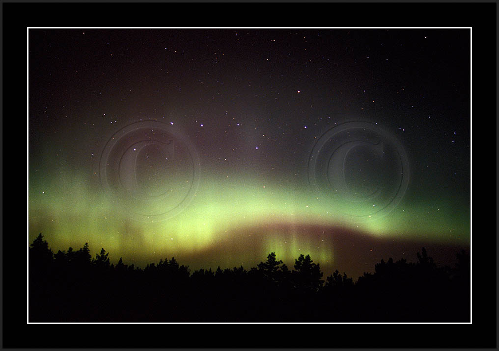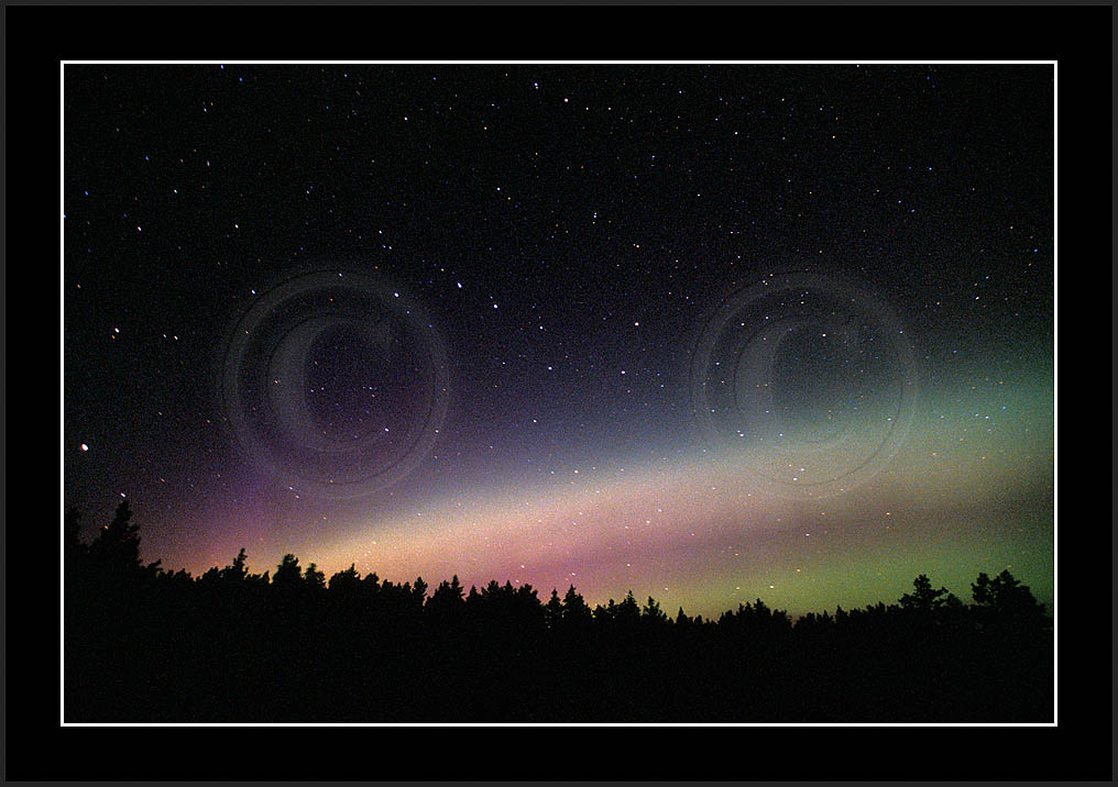 Autumn 2002 turned out to be a good period for auroras. Already in light late summer sky Aug 9/10 during Perseid watch a lonely arch did show up (re21534), followed by a short lived but nice display Sep 3/4 (re21631-re21732). Sep continued with increased activity in 7/8, but unfortunately I had a most severe fog much of the night and could not get too good a history of that night (re21832 and re 21953). Then, finally after having got the first truly dark skies, in Sep 10/11 a good display was witnessed (re22124-re23332) followed by another less spectacular on in Sep 11/12 (images re23433...). For Oct 2002 see two next pages.