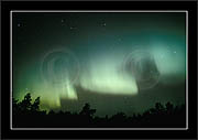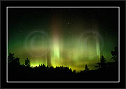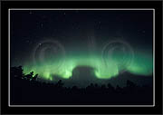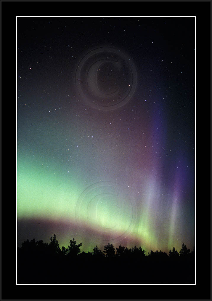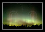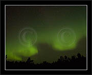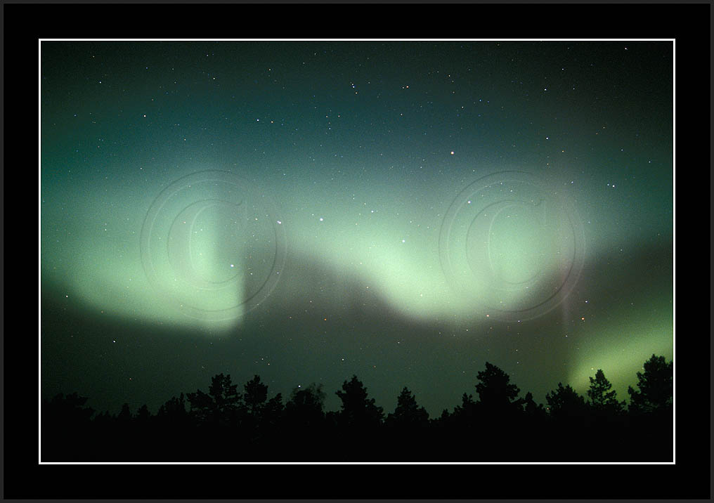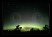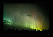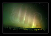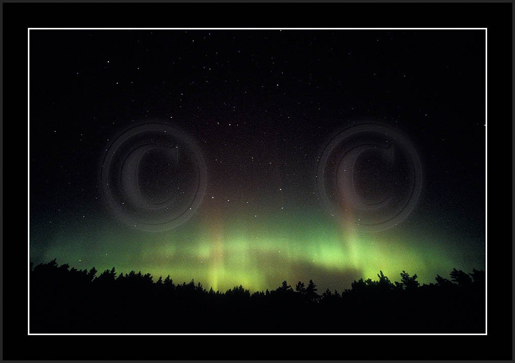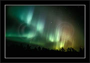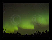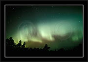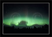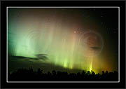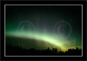After October's first major storm one cloudy (and also "aurora free") night was followed by another major display on 3/4 (all images here down to re29744). Missing colours (but green) was quite evident during the night; also there was not too much fine structure in the vast aurora forms. Again after a couple of cloudy (and again practically "aurora-free") nights one more night Oct 7/8 (images re29821-30813) was lit by heavenly lights. This night, however, was partly spoiled by clouds. Apparently I lost the very high point of the display although the final bright red column was very conspicious.