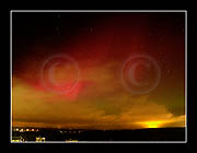 What was special in this display (much like in April the 6th 2000 display) was that northern sky was practically empty of auroras while in the south auroras extended as low as I could see under foggy conditions. Also the very extensive red colour resembled April's display. Physically both displays were "driven" with exceptionally negative figures in planetary magnetic field's z-component values (Bz): in April it was (if I recall it right) about -50nT while this new one showed values down to -55nT.