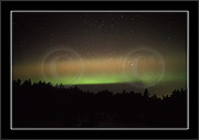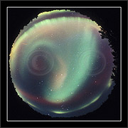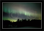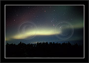 The rest of images are from a "surprise" display 11/12 Feb 2004. There was no CME known to arrive and also the most probable source - solar wind from a coronal hole - did not give too much hope of a good display. However, before leaving for star photography it was evident from Costello-prediction that there was moderate auroral activity on. In the early evening 17-19 UT the whole sky was full of diffuse and "peculiar" shaped aurora. It is not common at my relatively southern latitude to have auroras extending down to 10 degrees in south. The very last image with reddish aurora glow is from Feb 21/22.
