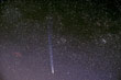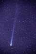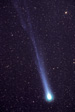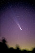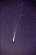 Hyakutake was at its best in late March 1996: in the night 23/24 the tail was visually 30 degrees long and in the night 26/27 40-45 degrees long. The sight was most impressive! Note the two hour startrail picture of Hyakutake (ko01123). This comet was moving so fast that its trail is not in line with stars. When I first saw these trail pictures I was puzzled: films stay in cameras over winter and this speciality was forgotten by the time film was developed. (You understand: filling a 36 frame film with exposures of 2-9 hours each isn't done in one night; actually films are loaded in autumn and removed early in summer.) Hyakutake's movement was so fast that it was possible to take stereo pictures of it; pictures only an hour apart did show weak 3D while the tail hadn't changed too much. Compare Hyakutake's trail with that of Hale-Bopp's.
