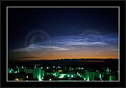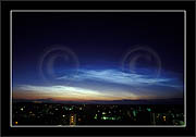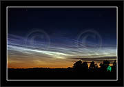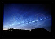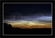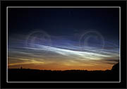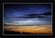 The double image shows, how in some cases polarizator can be used to identify NLC. When pol-filter is rotated and (light summer) sky becomes darker (in certain direction), then if also clouds disappear or become fainter in that same direction then they are NLCs. If the clouds remain unchanged or become more conspicious, they are ordinary stratospheric clouds.