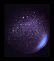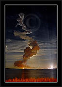 The first four images are apparently from a barium experiment: an explosion was observed in north in the evening and in the morning a blue cloud spread from NE. It was a bit frightening and actually I wondered whether I might see cars with loudspeaker driving and warning of something. None was heard! Images ra00334 and ra00413 are from a Russian submarine missile fired in Ice Sea 1000+ kms north of photography site.