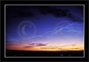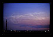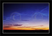 Night August 6-7 revealed one of the most beautiful displays in my 30 years of NLC-observing. Using the slide film Kodak Extra Color (EBX) made pictures even more conspicious due to low display and strong red night twillight. (See next page.)