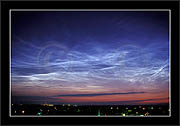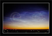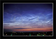 Starting this page July 25/26 shows extremely bright and compact bands. Later the display gave birth to complex structures. In NLC-morphology category IV clouds are named "whirls". One kind of a whirl can be identified in images vy28923 and vy28932. Whirls are defined as "partial or complete rings of cloud with dark centres", but it is also stated that "they are sometimes seen in veil, band and billow forms" - so much of the "dark centres"!
